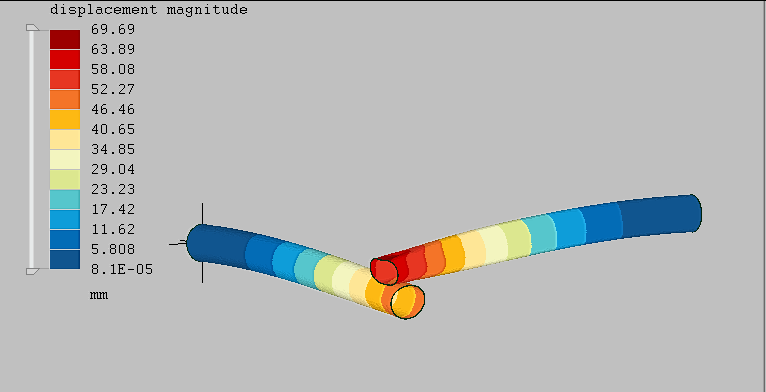 Do you mean this ? And I guess that you fixed all 3 DOFs in the cylindrical system. I will need another partition there because *TRANSFORM is supported in FreeCAD FEM but not for edges. However, it works this way although the system is stiffer (the end result doesn’t have to be around 60 mm though, there’s no reference value for this example).